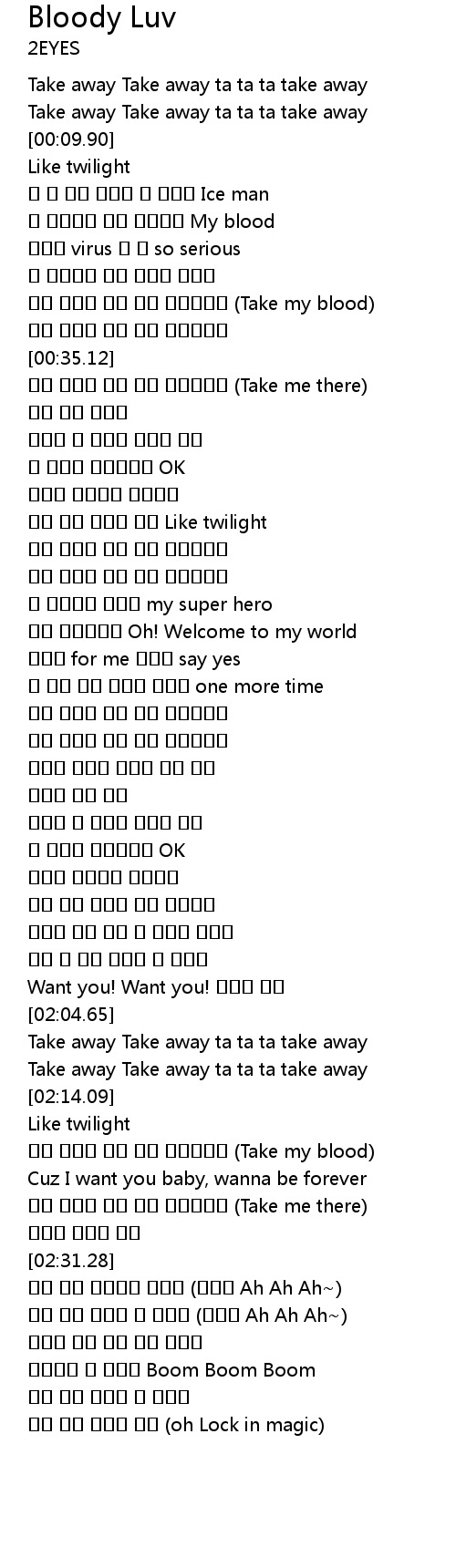 | [02:17.47] | 바라 빔바라 붐바 붐바 붐바라밤바 (Take my blood) |