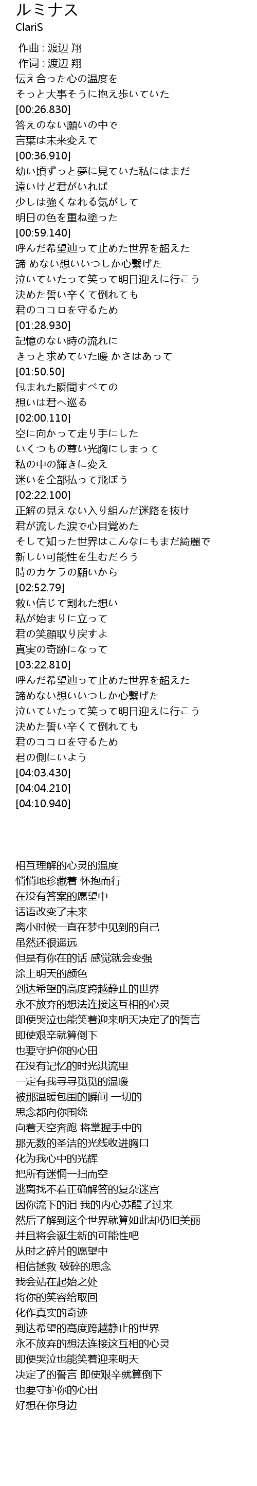 | [03:24.970] | 呼んだ希望辿って止めた世界を超えた |