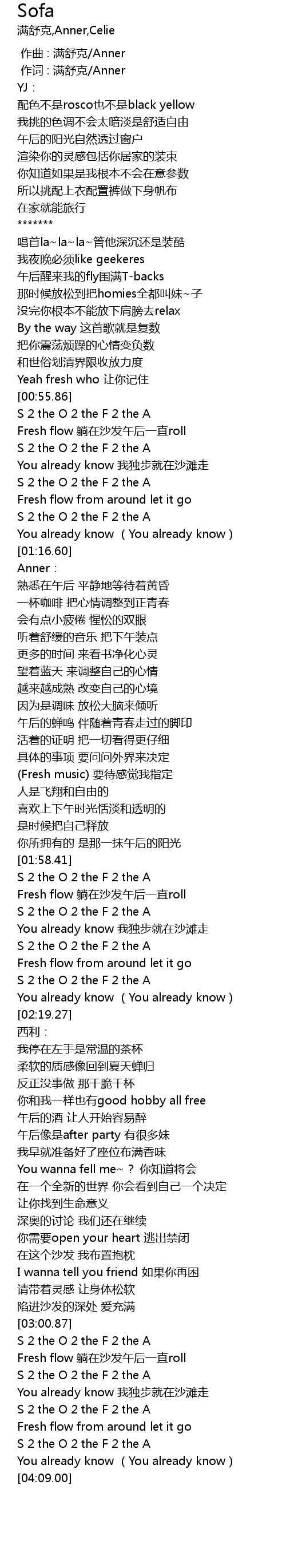 | [03:04.31] | Fresh flow 躺在沙发午后一直roll |