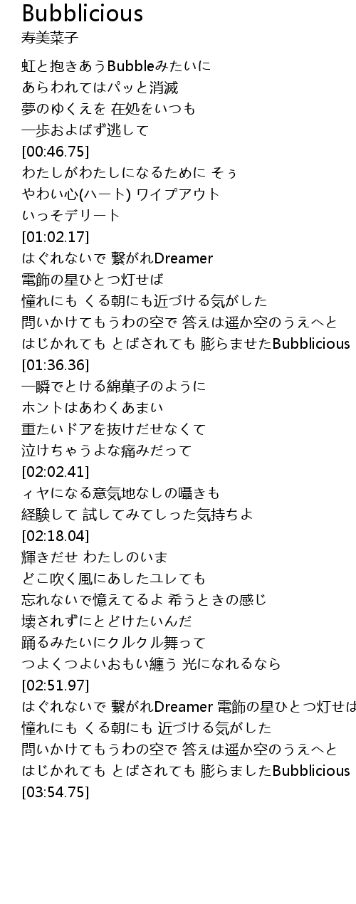 | [03:47.28] | はじかれても とばされても 膨らましたBubblicious |