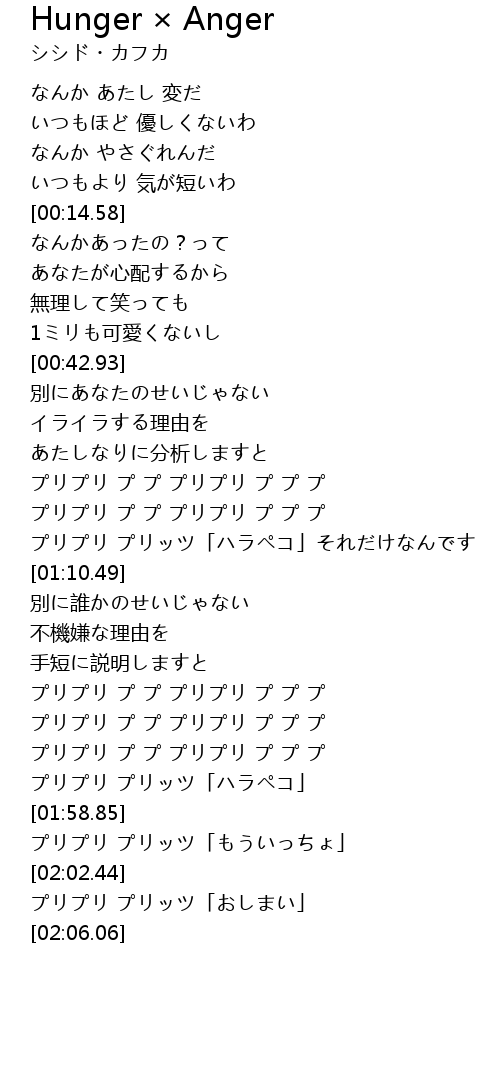 Hunger Anger Lyrics