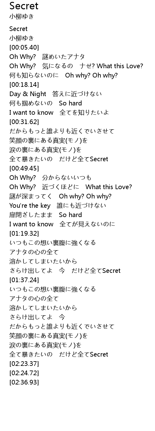 | [00:44.80] | 全て暴きたいの だけど全てSecret |