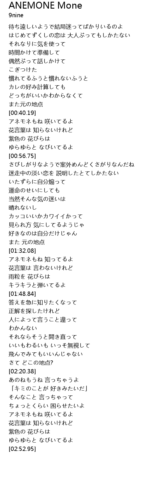 | [02:37.05] | アネモネもね 咲いてるよ |