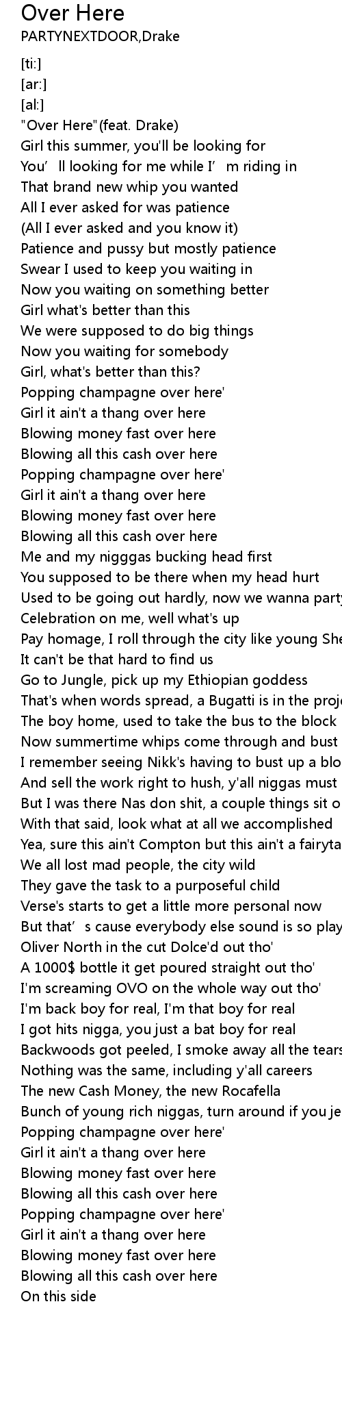 | [00:00.00] | " Over Here" feat. Drake |