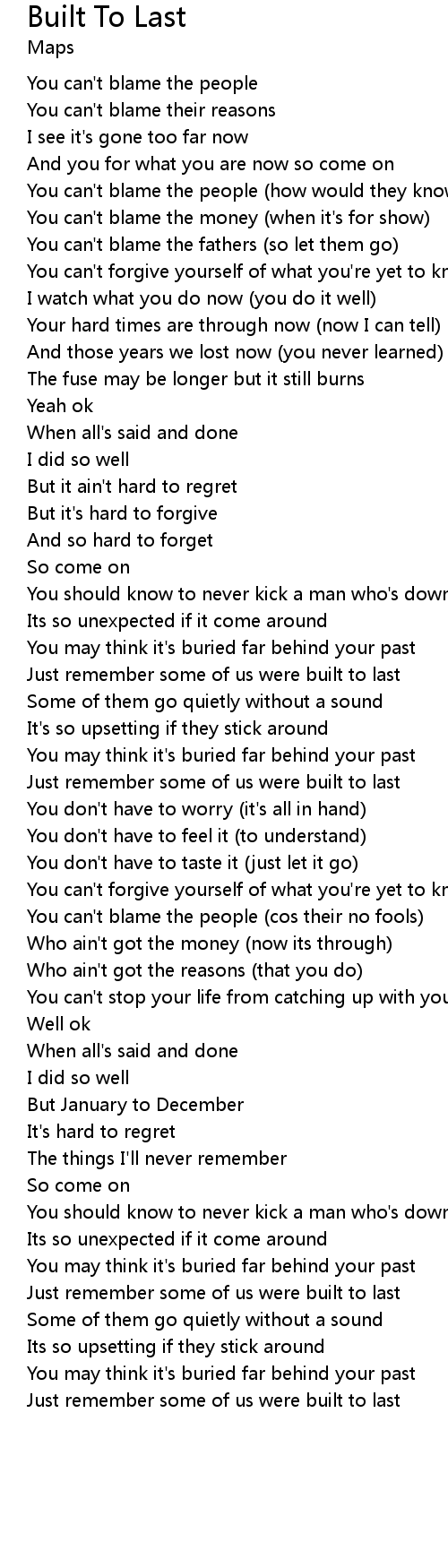 Just remember some of us were built to last |