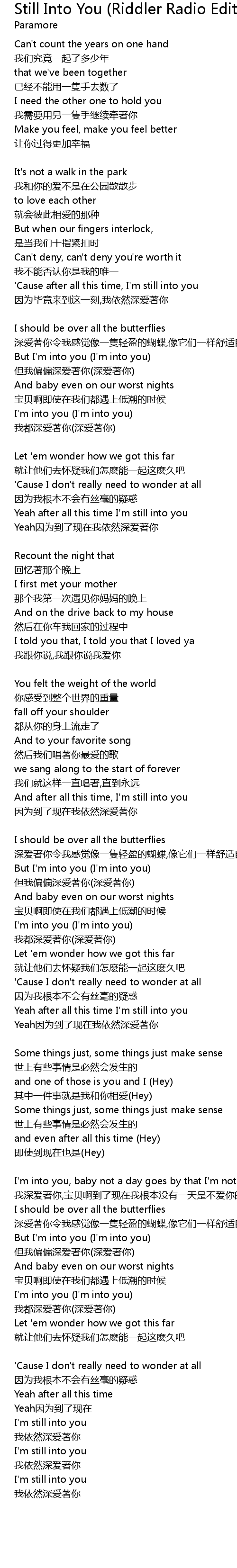 | Song | Still Into You (Riddler Radio Edit) |