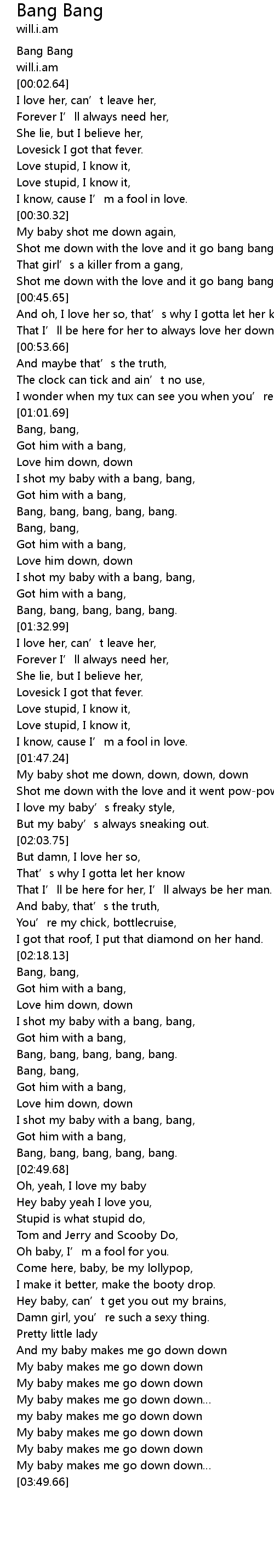 | [02:32.25] | Bang, bang, bang, bang, bang. |