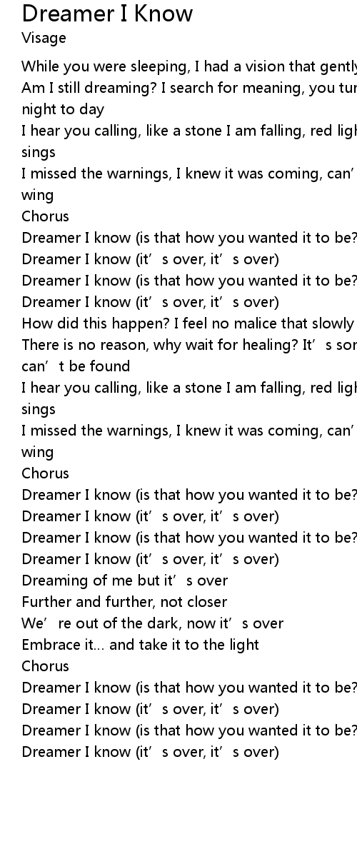 | [01:13.32] | Dreamer I know (it’s over, it’s over) |