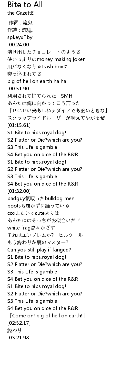| [02:03.84] | badguy気取ったbulldog men |