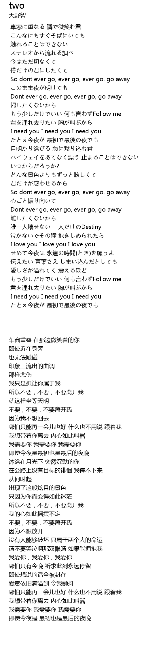 | [00:44.290] | So dont ever go, ever go, ever go, go away |