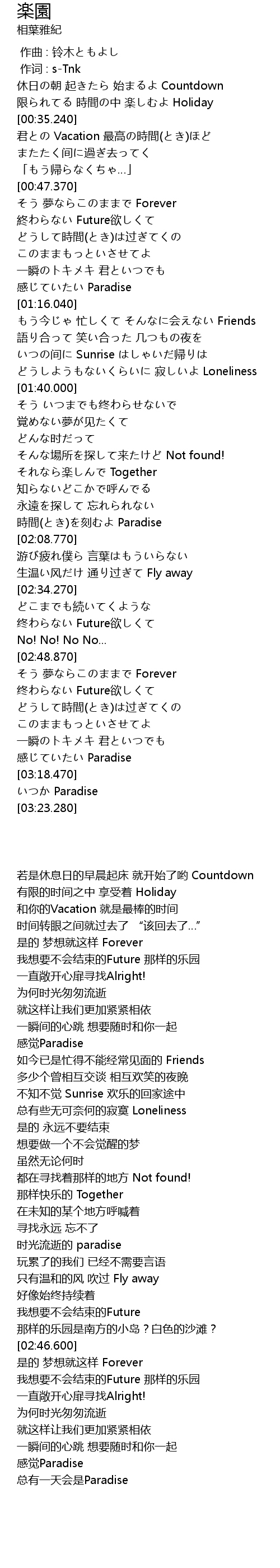 | [02:04.190] | 時間(とき)を刻むよ Paradise |