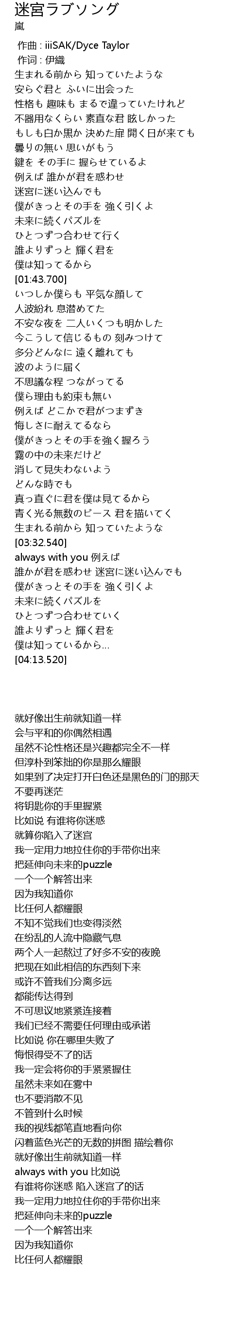 | [03:39.860] | 誰かが君を惑わせ 迷宮に迷い込んでも |