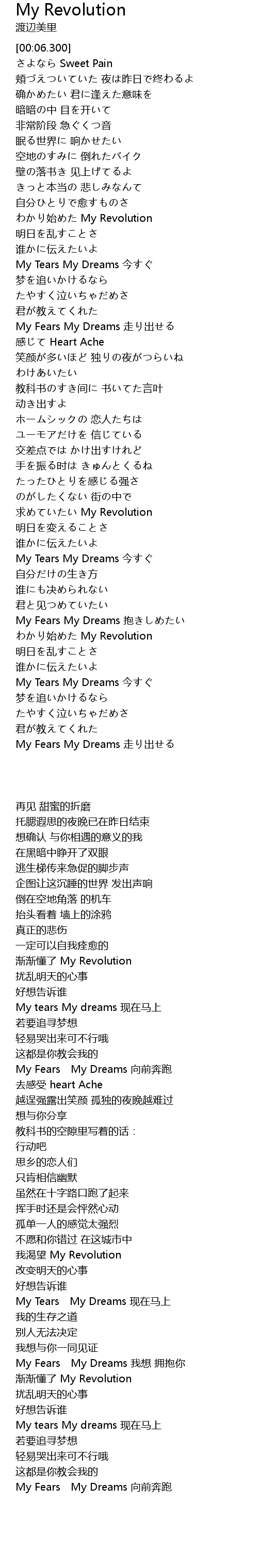 | [04:03.700] | My Fears My Dreams zǒu chū |