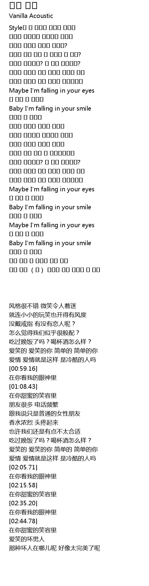 | [00:59.16] | Maybe I' m falling in your eyes |