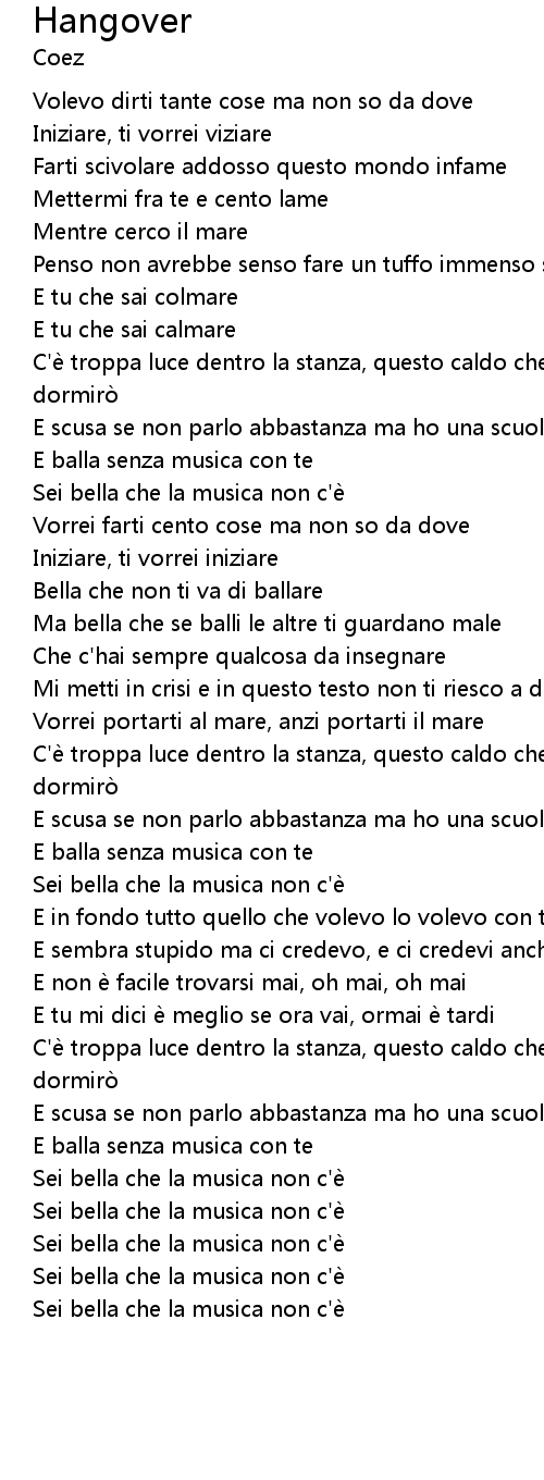 | [00:37] | C'e troppa luce dentro la stanza, questo caldo che avanza, io non dormiro |