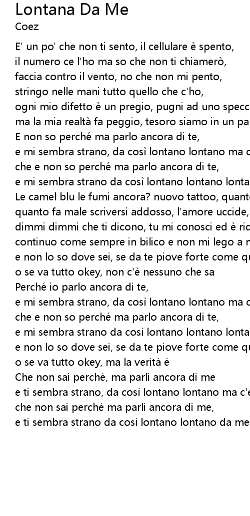 | e mi sembra strano da cosi lontano lontano lontano lontano da te | |