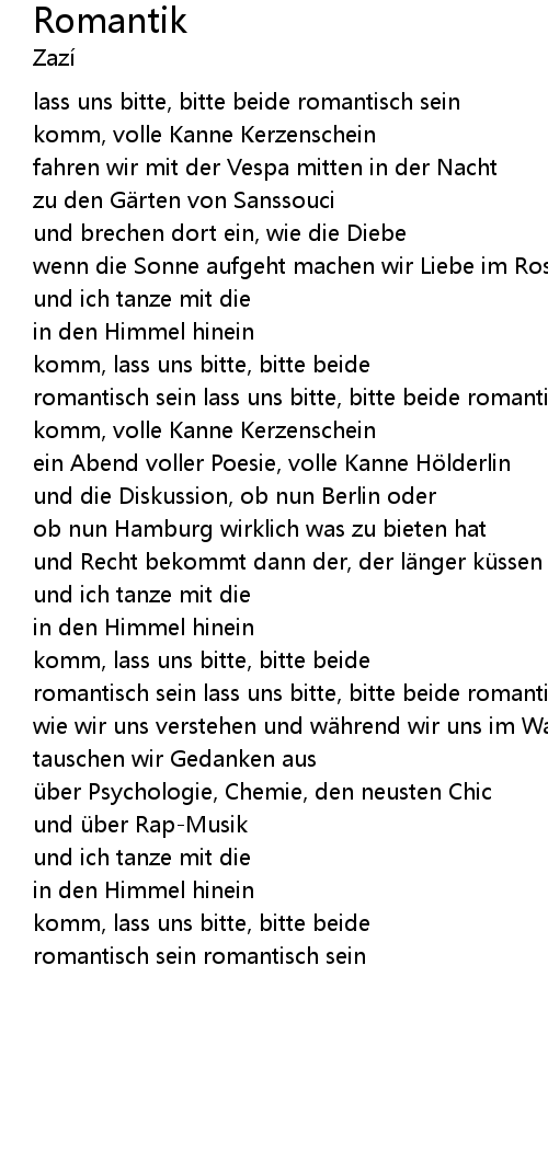 | romantisch sein lass uns bitte, bitte beide romantisch sein | |