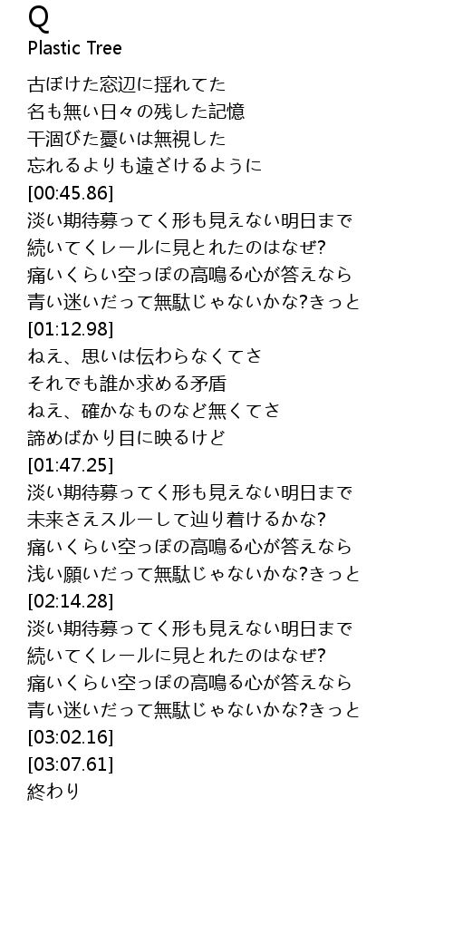 | [00:34.02] | 干涸びた憂いは無視した |