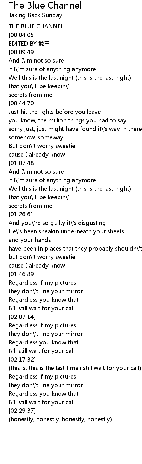 | [00:02.45] | THE BLUE CHANNEL |