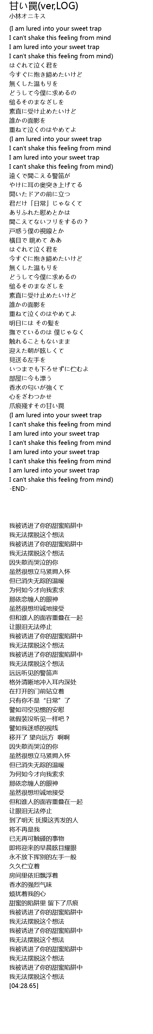 | [04:18.83] | I am lured into your sweet trap |