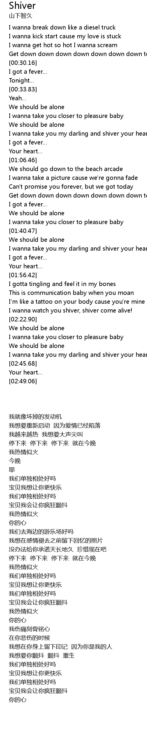 | [02:19.22] | I wanna watch you shiver, shiver come alive! |