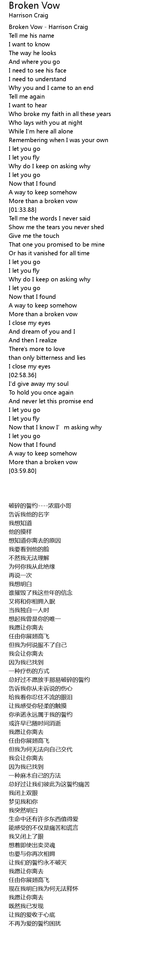 | [00:00.23] | Broken Vow - Harrison Craig |