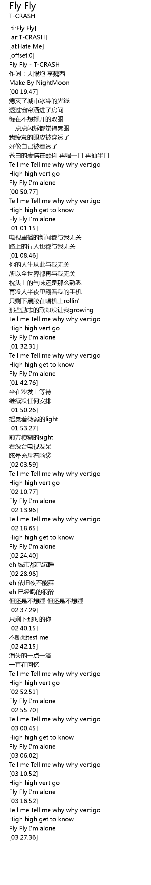 | [03:17.83] | Tell me Tell me why why vertigo |