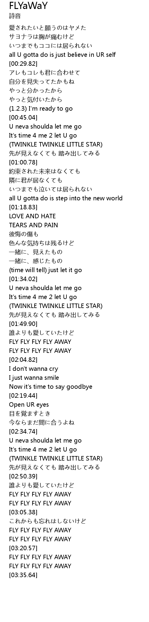 | [03:32.13] | FLY FLY FLY FLY AWAY |