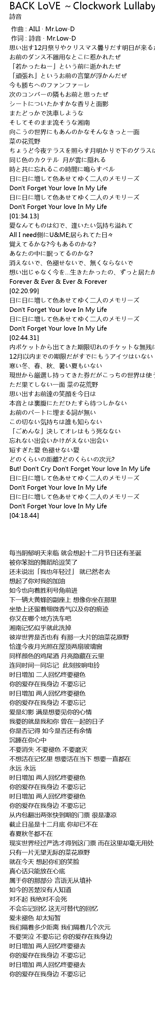 | [00:01.00] | 作词 : 詩音 · Mr.Low-D |
