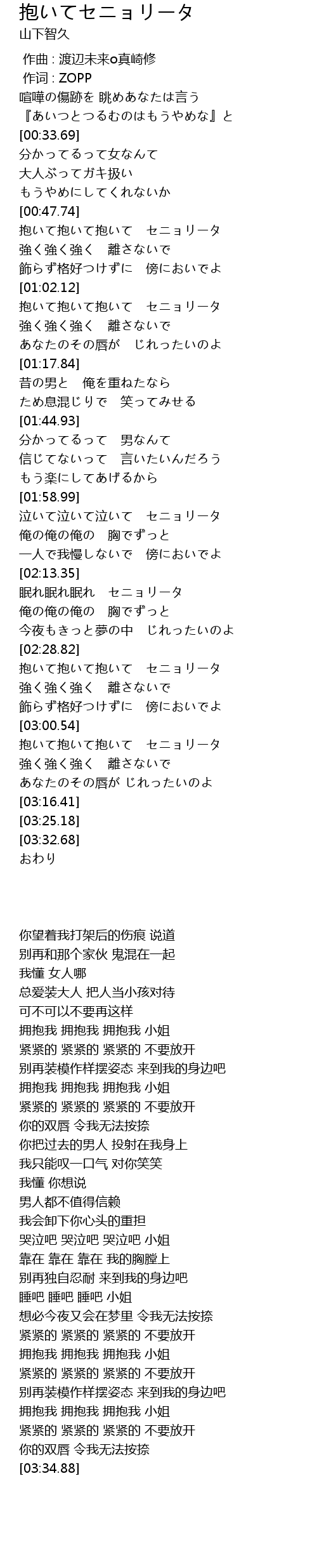 | [03:01.01] | 抱いて抱いて抱いて セニョリータ |