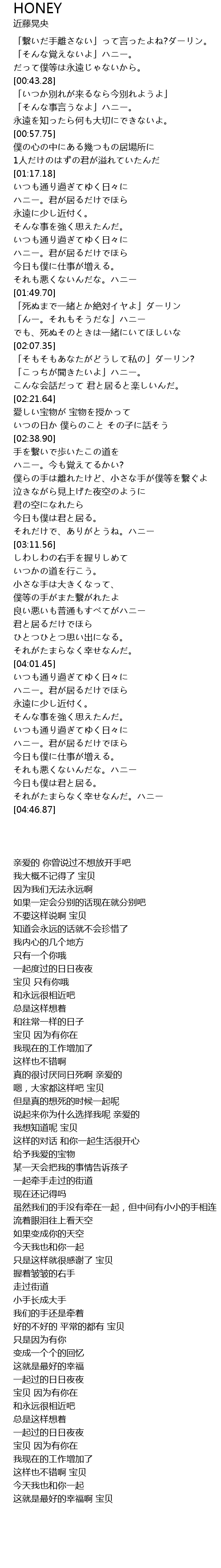 | [03:47.54] | 良い悪いも普通もすべてがハニー |