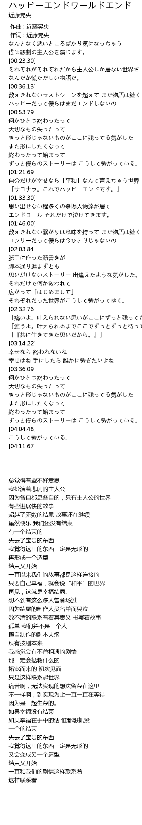 | [01:29.02] | 「サヨナラ。これでハッピーエンドです。」 |