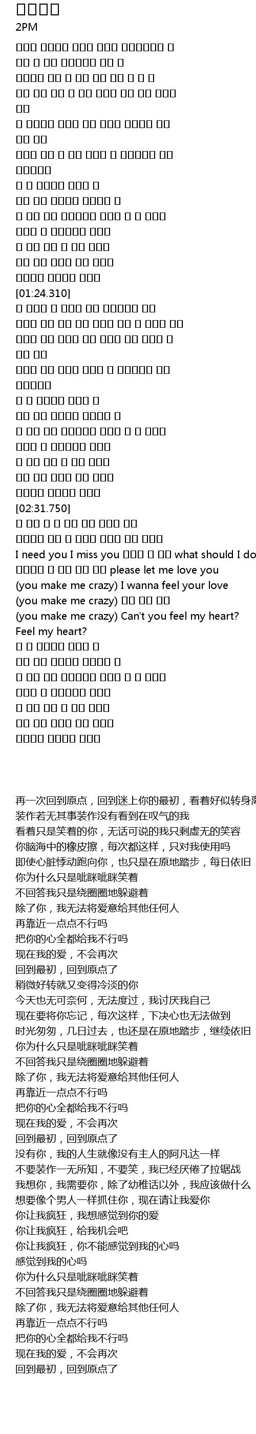 | [02:41.870] | I need you I miss you 유치한 말 밖에 what should I do |