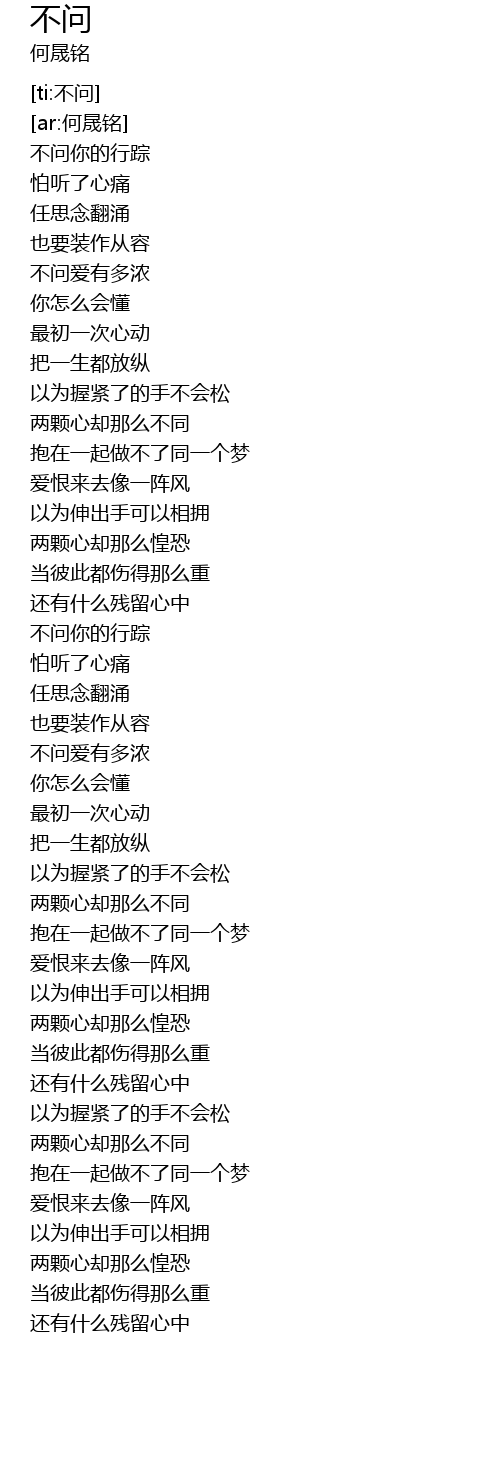 | [00:46.390] | bù wèn nǐ de xíng zōng |