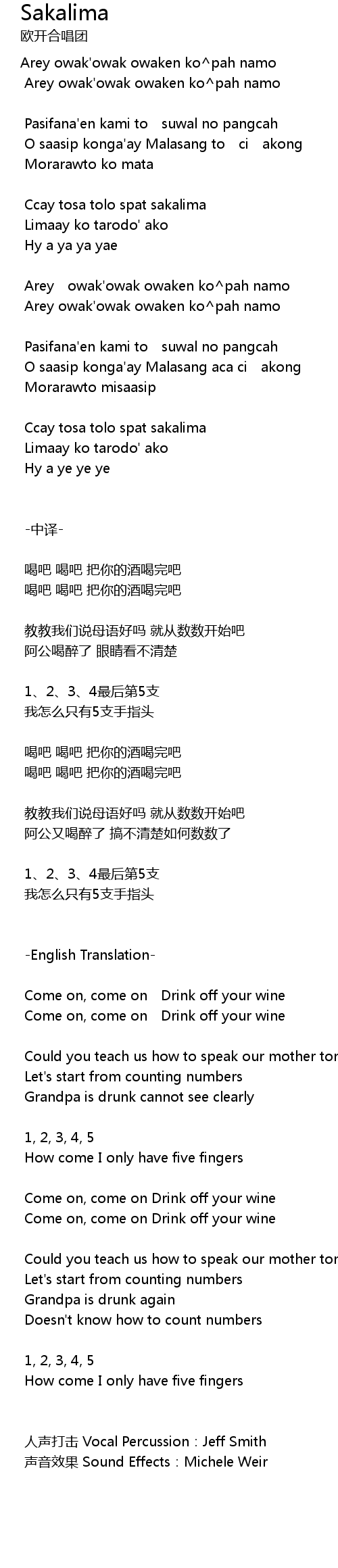 | Artist | 欧开合唱团 |