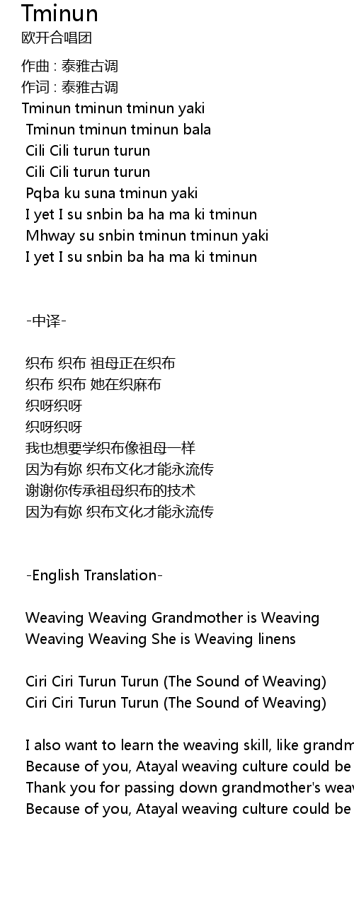 | Ciri Ciri Turun Turun (The Sound of Weaving) | |