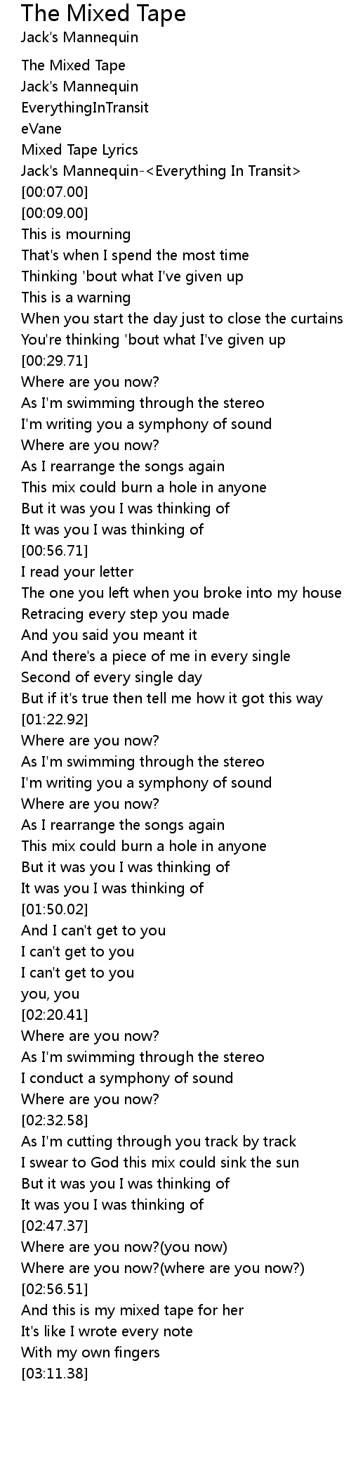 Mixed Tape Lyrics |