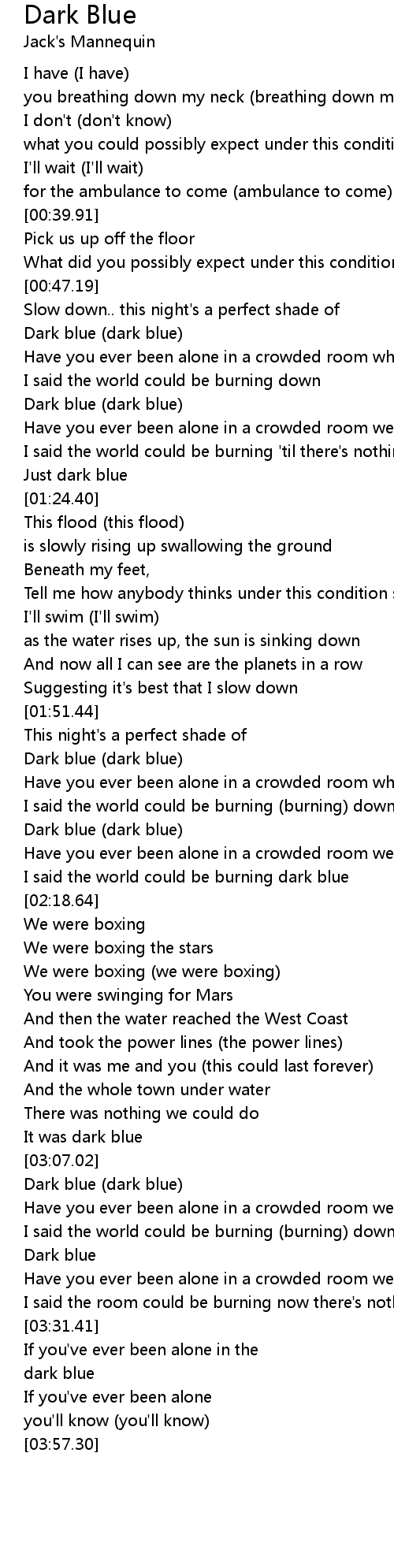 I said the room could be burning now there's nothing but dark blue |