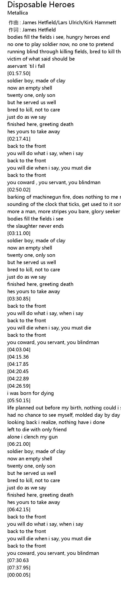 | [00:00.01] | 作词 : James Hetfield |