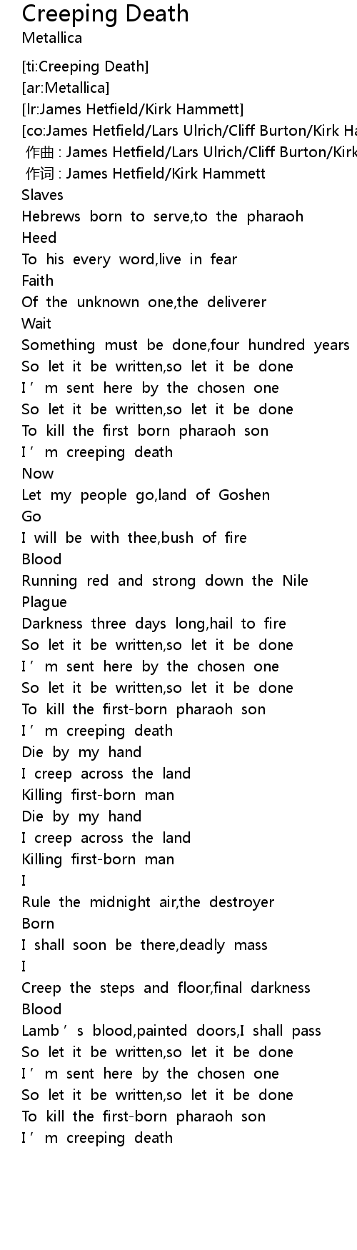 | [00:01.00] | 作词 : James Hetfield/Kirk Hammett |