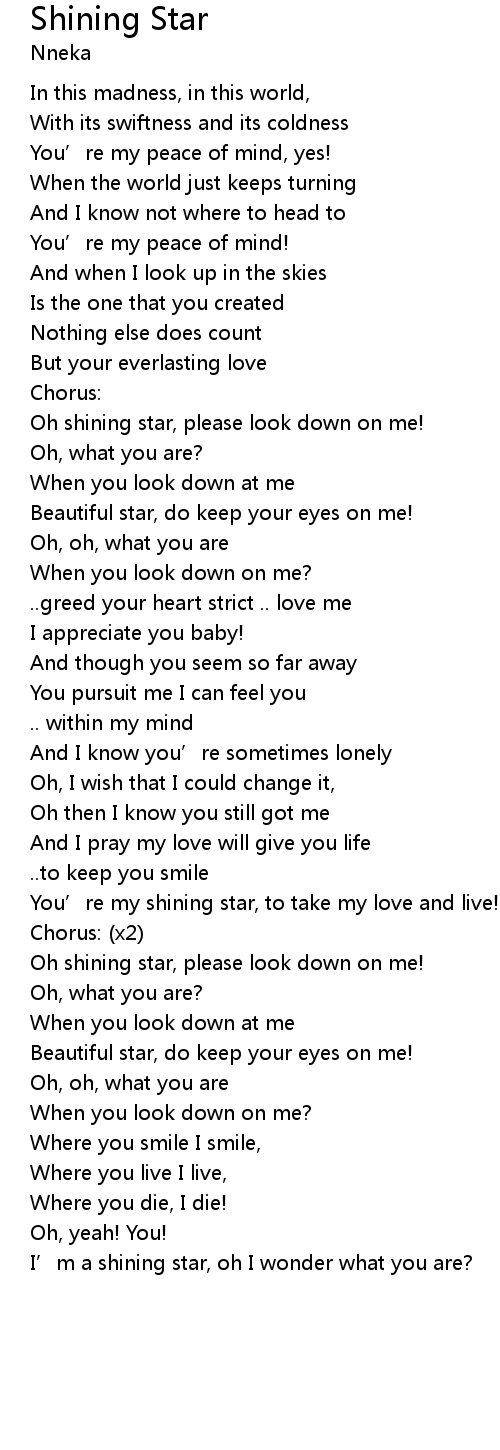 | I’m a shining star, oh I wonder what you are? |