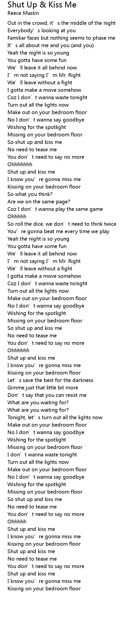| So shut up and kiss me | |