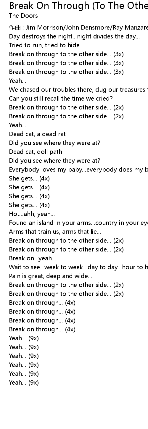 | 作曲 : Jim Morrison/John Densmore/Ray Manzarek/Robby Krieger/The Doors | |