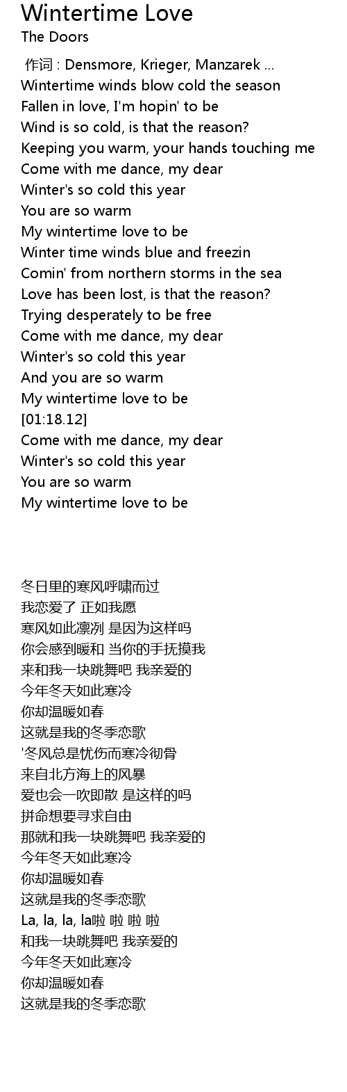 | [00:34.43] | My wintertime love to be |