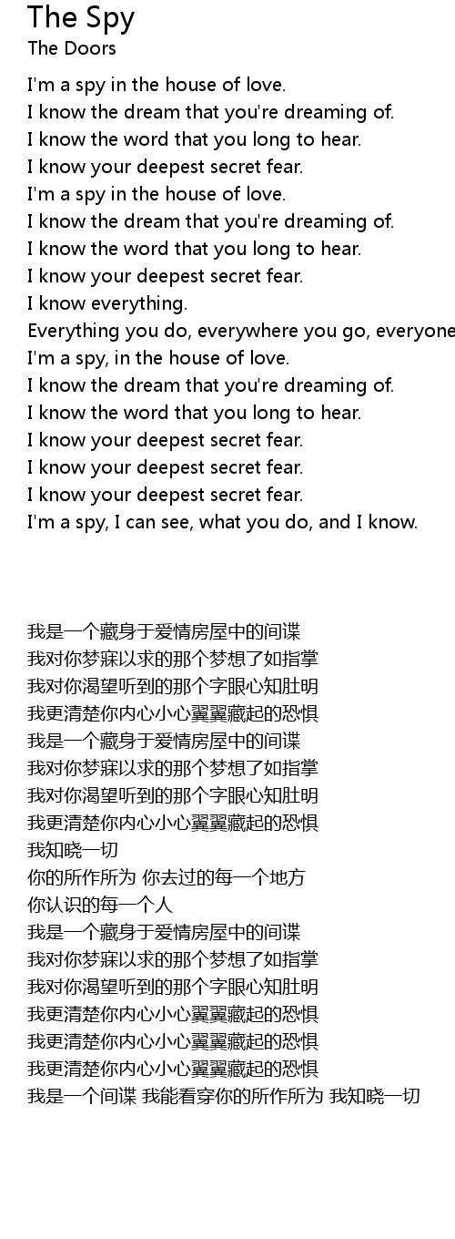 | [02:14.680] | I'm a spy, in the house of love. |