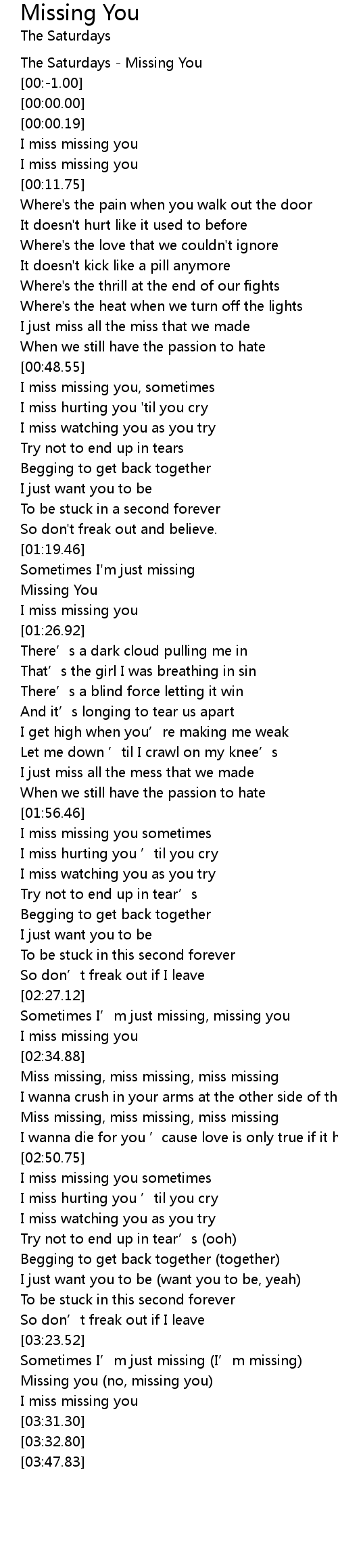 | [02:43.00] | Miss missing, miss missing, miss missing |