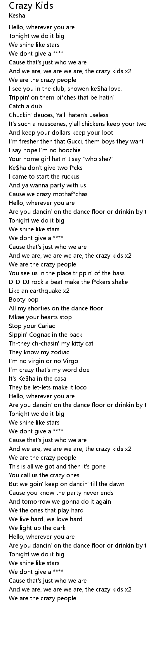 And we are, we are we are, the crazy kids x2 |