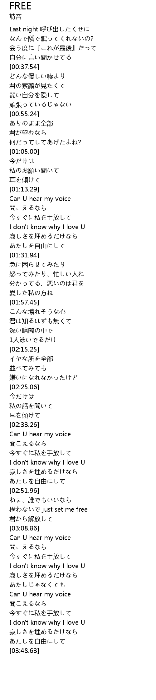 | [03:45.54] | あたしを自由にして |