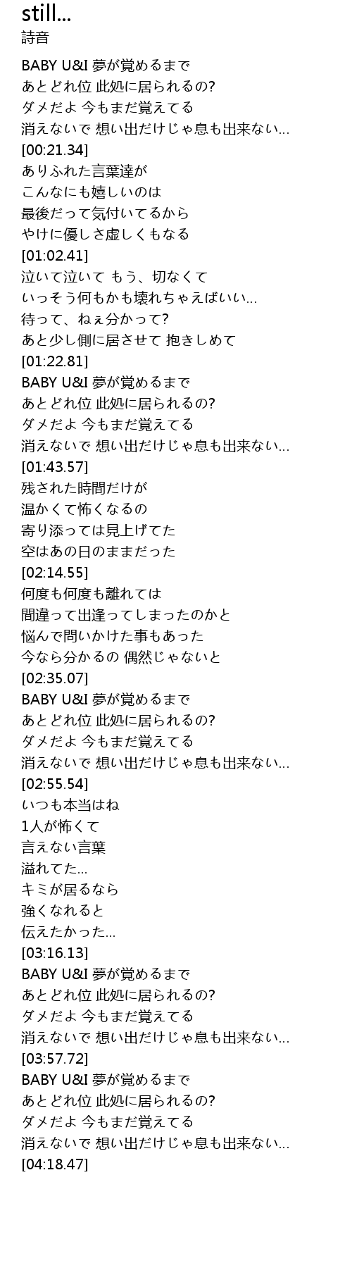 | [03:58.15] | BABY U&I 夢が覚めるまで |