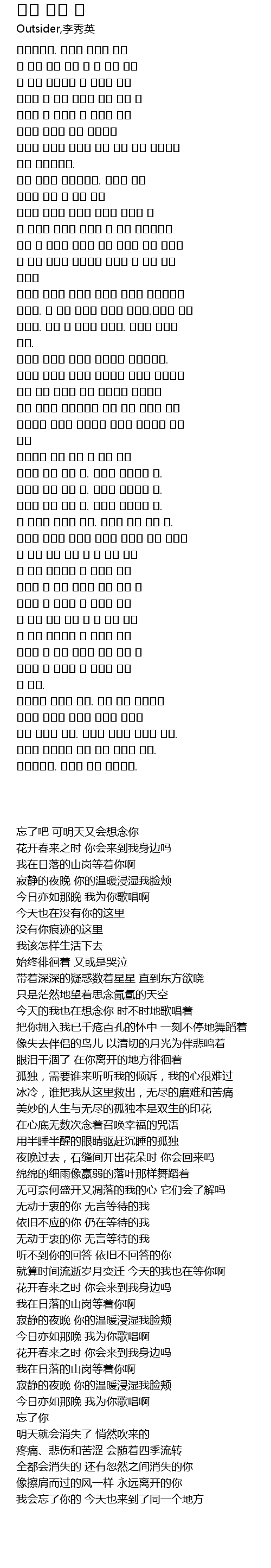 여전히 대답 없는 너. 아직도 기다리는 나. |